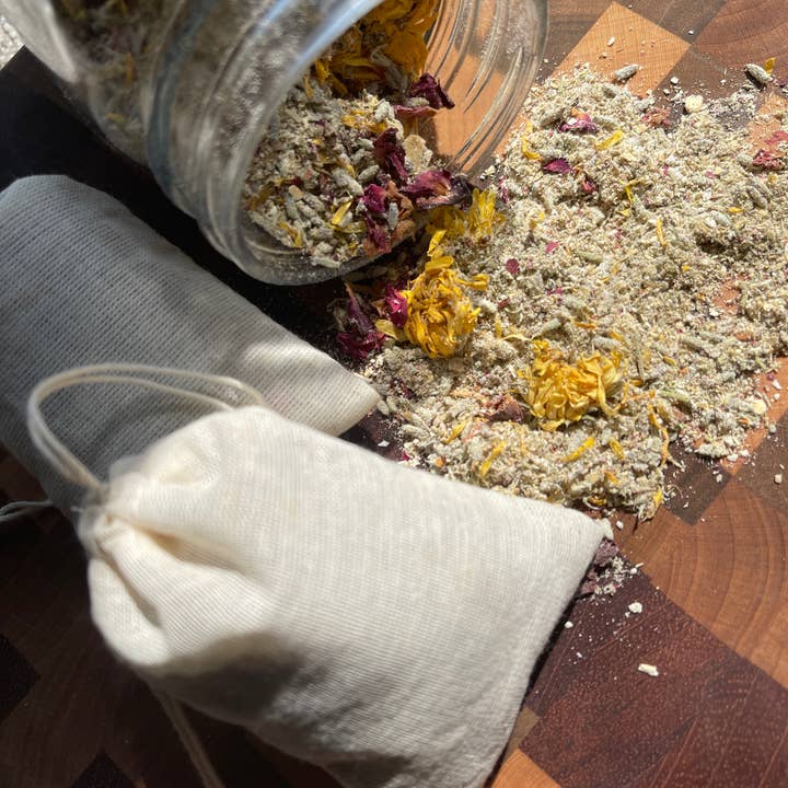 Ingredients: Organic Lavender, Chamomile, Calendula, Rose, Oatmeal